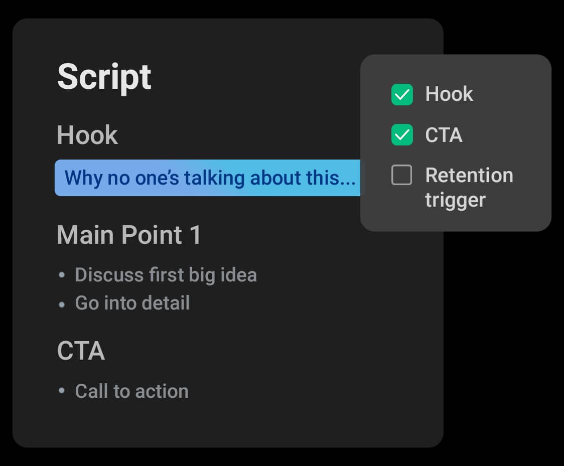 Structure videos people actually finish watching. Learn to write (or bullet) videos using clear, proven structures that keep attention high and bounce rates low. You’ll get scripting checklists, high-retention hook formulas, CTA placements, and easy-to-follow outlines that work whether you script every word or just riff.